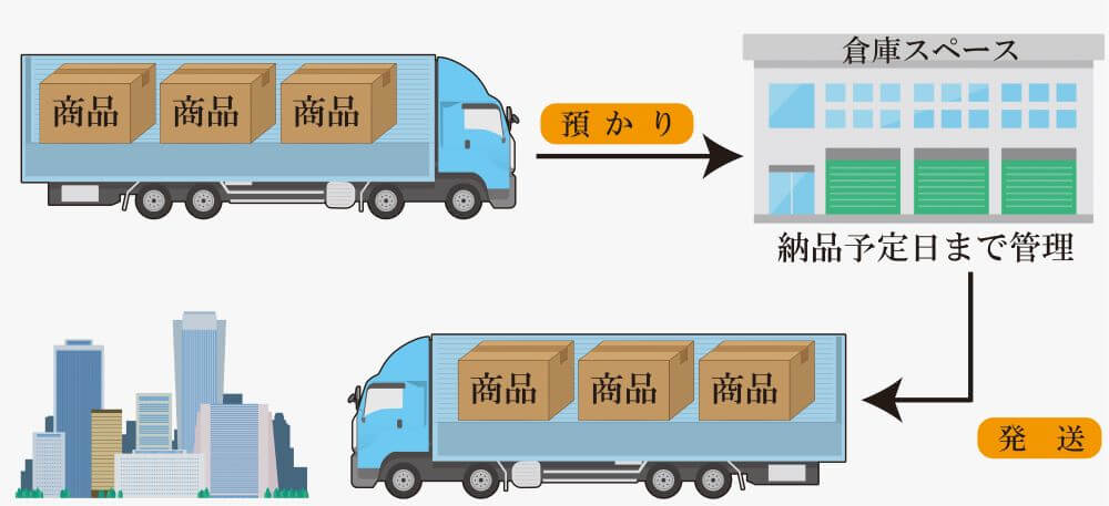 弊社にてお荷物をお引き取りさせて頂き、倉庫にて保管。